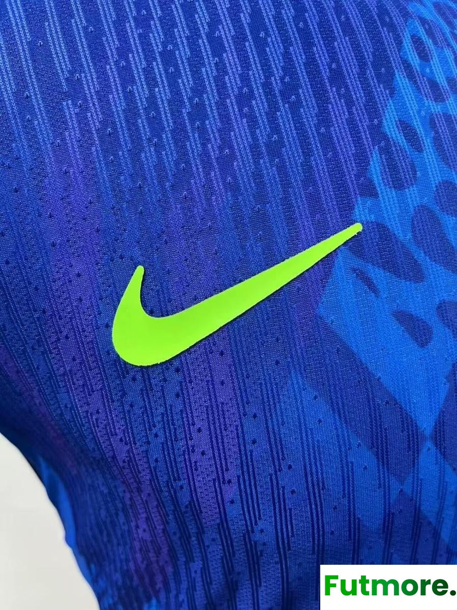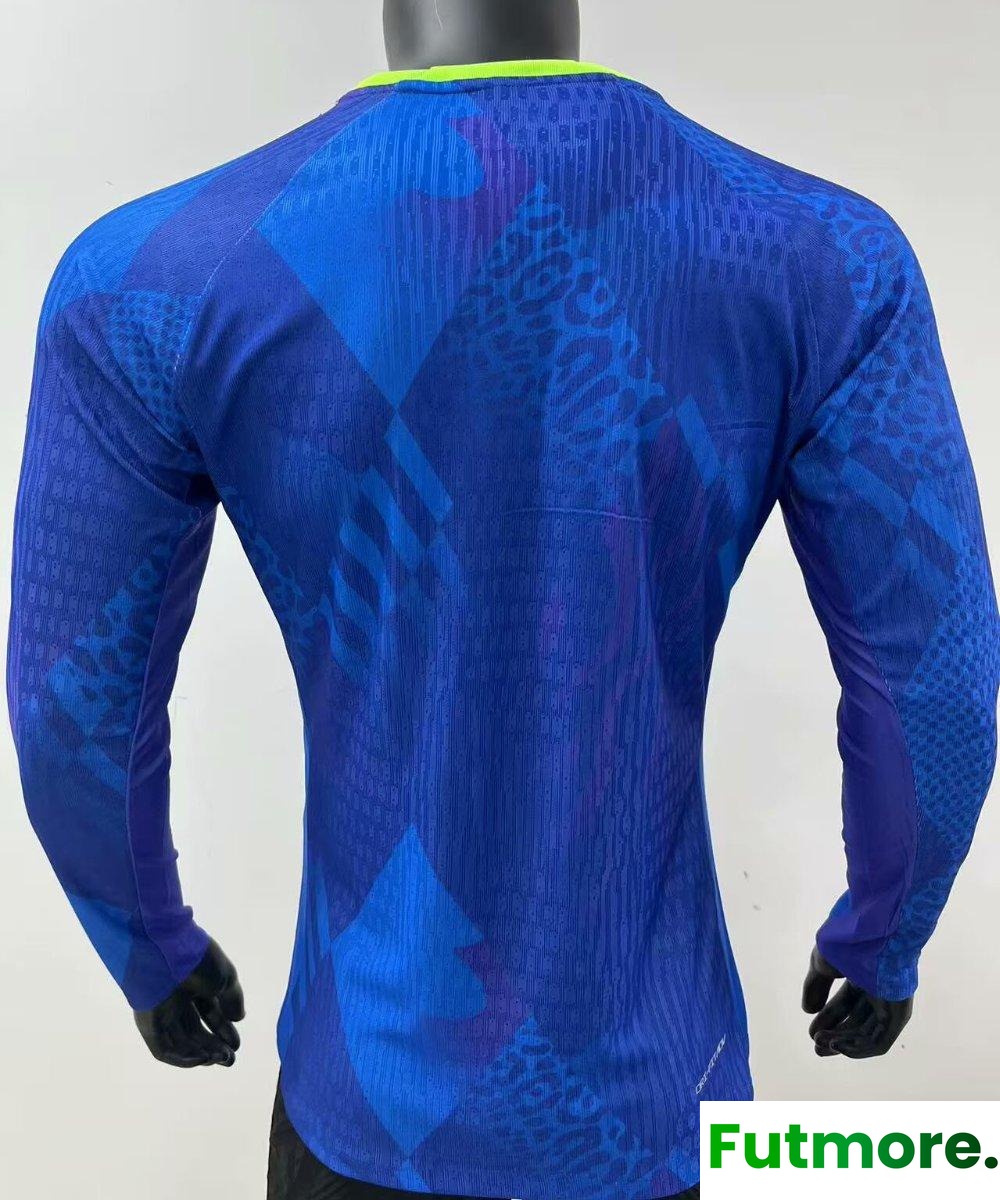 Player Version 2025 Brazil Away Blue Long Sleeve Jersey