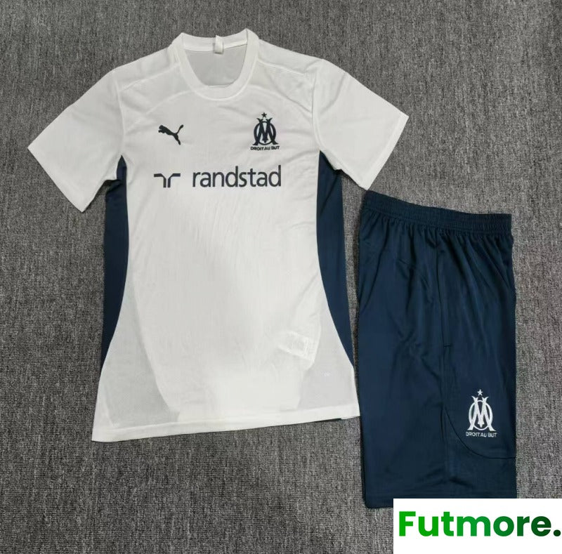24/25 Kids Olympique Marseille White Short Sleeve Jersey+Shorts