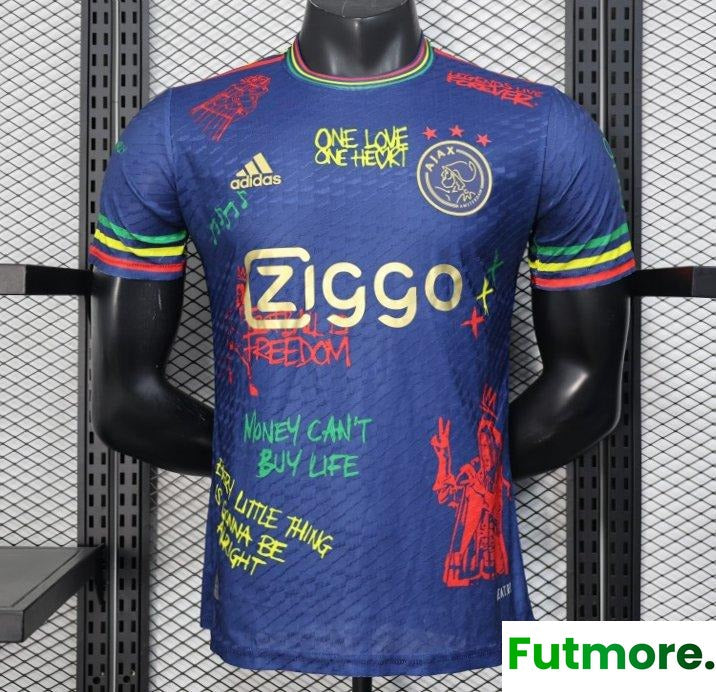 Player Version 25/26 JAjax Jersey with Bob Marley Tribute Design and Inspirational Quotes